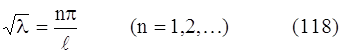 (мы не берем значение n = 0, так как в этом случае было бы Х ≡ 0 и u ≡ 0). Итак, мы получили: