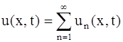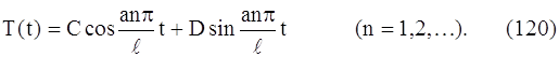 Для каждого значения n, следовательно, для каждого λ, выражения (119) и (120) подставляем в равенство (112)и получаем решение уравнения (107), удовлетворяющее граничным условиям (108) и (109). Это решение обозначим un (x, t):
