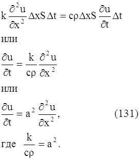 где с – теплоемкость вещества стержня, ρ – плотность вещества стержня (ρ∆xS – масса элемента стержня). Приравнивая выражения