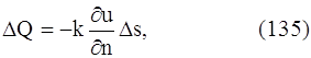 где k – коэффициент теплопроводности рассматриваемой среды, которую мы считаем однородной и изотропной, n – единичный вектор, направленный по нормали к площадке ∆s в направлении движения тепла. Таким образом, можем записать: