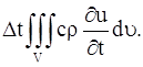 где с – теплоемкость вещества, ρ – плотность. Общее количество тепла, затраченное на повышение температуры в объеме V за время ∆t, будет