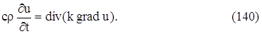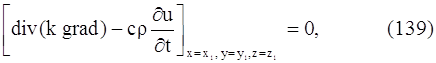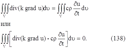 где P(x, y, z) – некоторая точка объема V. Так как мы можем выделить произвольный объем V в трехмерном пространстве, где происходит распространение тепла, и так как мы предполагаем, что подынтегральная функция в равенстве (138) непрерывна, то равенство (139) будет выполняться в каждой точке пространства. Итак,