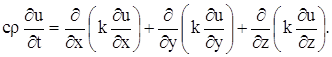 уравнение теплопроводности с тремя независимыми переменными имеет вид: