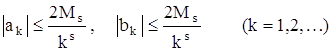Оценка коэффициентов Фурье. (Бугров) Теорема 1. Пусть функция ƒ(x) периода 2π имеет непрерывную производную ƒ(s)(x) порядка s, удовлетворяющей на всей действительной оси неравенству: │ ƒ(s)(x)│≤ Ms; (5) тогда коэффициенты Фурье функции ƒ удовлетворяют неравенству