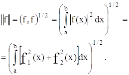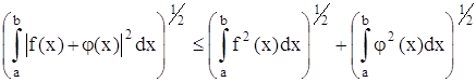 называется нормой функции f. Норма обладает следующими свойствами: 1) || f || ≥ 0, при этом равенство может быть только для нулевой функции f = 0, т. е. функции, равной нулю, за исключением, быть может, конечного числа точек; 2) || ƒ + φ || ≤ || ƒ(x) || || φ ||; 3) || α ƒ || = | α | · || ƒ ||, где α – действительное число. Второе свойство на языке интегралов выглядит так: