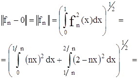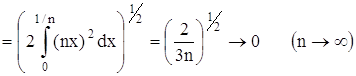 и, следовательно, эта последовательность функций, хотя и сходится к нулю при n → ∞, но неравномерно. Между тем