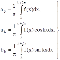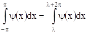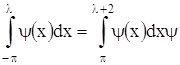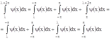 Указанное свойство означает, что интеграл от периодической функции ψ(x) по любому отрезку, длина которого равна периоду, имеет всегда одно и тоже значение. Из доказанного свойства вытекает, что при вычислении коэффициентов Фурье мы можем заменить промежуток интегрирования (-π, π) промежутком интегрирования (λ, λ +2π), т. е. можем положить