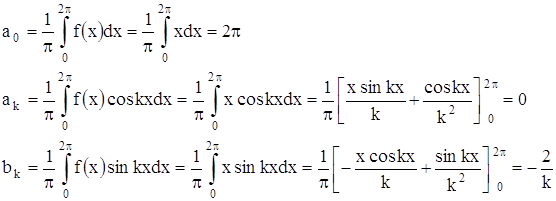 Определяем коэффициенты Фурье этого ряда: