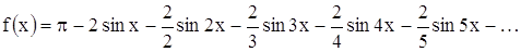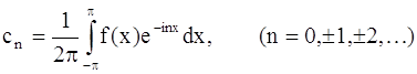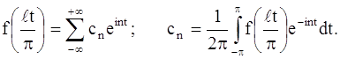 Тогда функция ƒ(lt / π) будет периодичной функцией от t с периодом 2π. Её можно разложить в ряд Фурье на отрезке –π ≤ x ≤ π: