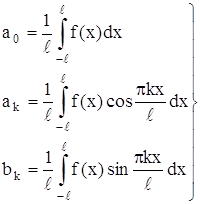 Переходя как в ряде, так и формулах для коэффициентов к старому переменному х и замечая, что t = π x / l, dt=(π / l)dx, получим в точках дифференцируемости: