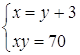 Ответ: длина – 300м., ширина – 200м. № 1 -Послушайте условие: «Одно из двух положительных чисел на 3 больше другого. Найдите эти числа, если их произведение равно 70?» -Пусть числа х и у. -Если известно, что одно больше на 3. Как запишем? (х=у+3) -Произведение чисел? (ху=70) -Составим систему: