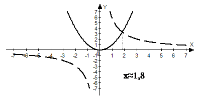 Эти графики пересекаются в одной точке. Абсцисса точки пересечения есть, то значение переменной х, при котором выражение х2 и 6/x принимают равные значения. Значит, абсцисса точки пересечения графиков функций y=x2 и y=6/x является корнем уравнения (x2=6/x). Из рисунка видно, что приближенное значение корня равно 1,8. Примененный способ решения уравнения называют графическим. Абсцисса точки пересечения – корень уравнения. -Запишите это предложение в тетрадь. Посмотрите как пишется слово абсцисса. V.Закрепление. - Найдите № 622 стр. 133. Прочитайте задание . К доске пойдет … , а остальные выполняют в тетрадях. a) х2=х+2 y=х2 у=х+2
