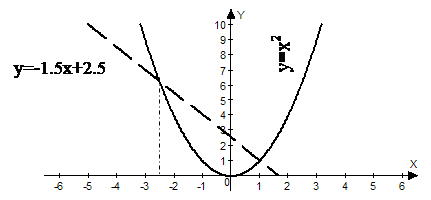2 и - 1 – являются решением уравнения Ответ : х=2 , х= -1, б) Посмотрите на следующее уравнение x2+1,5х-2,5=0 - Какие преобразования мы должны выполнить? y=х2 у= -1,5х+2,5 - К доске пойдут….., ..… Одна составляет таблицу для у=х2, другая у=-1,5х+2,5. - Затем графики постройте в одной координатной плоскости и найдете точки пересечения.