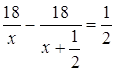 18*2(х+1/2)-18*2х=1х(х+1/2) 36(х+1/2)-36х=х(х+1/2) 36+18-36=х2+1/2х х2+1/2х-18=0 Д=в2-4ас=1/4-4*(-18)=1/4+72=72*1/4=289/4