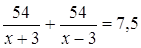 54(х-3)+54(х+3)=(7,5х+22,5)(х-3) 54х-162+54х+162=7,5-22,5х+22,5х-67,5 7,5х2-108х-67,5=0 1,5х2-21,6х-13,5 Д=в2-4ас=(-21,6)2-4*1,5*(-13,5)=466,56+81=547,56>0