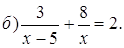 2) Задача. Катер прошел 12 км. против течения реки и 5 км по течению. При этом он затратил столько времени сколько ему потребовалось бы, если бы он шел 18 км. по озеру. Какова собственная скорость катера, если известно что скорость течения реки равна 3 км/ч. Вариант-II 1) Решите уравнения: