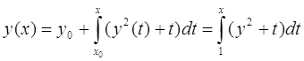 к интегральному уравнению и построить последовательные приближения б) Указать какой-либо отрезок, на котором сходятся последовательные приближения, и доказать их равномерную сходимость. Сведем данное уравнение к интегральному :