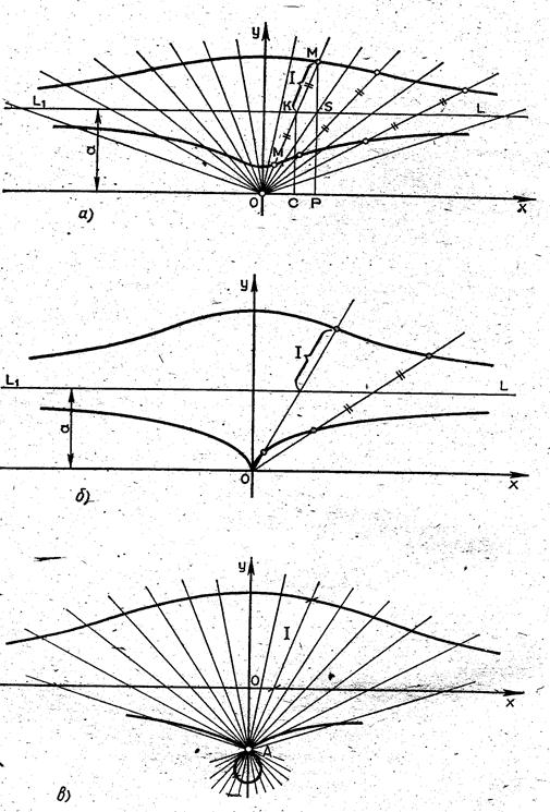 Рис. 3, а, б, в: конхоида Никомеда Задача о трисекции угла становится разрешимой и общем случае, если не ограничиваться в геометрических построениях одними только классическими инструментами, циркулем и линейкой. Попытки решения задачи с помощью инструментов и средств были предприняты еще в V в. до н.э. Так, например, Гиппий Элидский, знаменитый софист, живший около 420 г. до н.э., пользовался для трисекции угла квадратрисой. Александрийский математик Никомед ( II в. до н.э.) решил задачу о трисекции угла с помощью одной кривой, названной конхоидой Никомеда (рис. 3), и дал описание прибора для черчения этой кривой.
