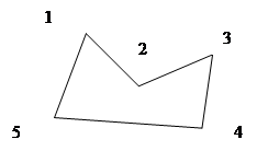 количество точек. Площадь определяется по формуле 2. Из курса геометрии известно, что любой многоугольник можно разбить на несколько треугольников, соединяя отрезками несмежные вершины. Площадь многоугольника при этом будет равна сумме площадей полученных треугольников. В этом заключается второй метод определения площади. Площадь треугольника по заданным вершинам легко определяется по аналитическим формулам, поэтому этот метод позволяет получить большую точность при меньших затратах вычислительных ресурсов. РАЗРАБОТКА ПРОГРАММНОЙ МОДЕЛИ. Решение задачи будем производить, разбивая одну большую и трудную задачу на несколько небольших и несложных. В черновом виде данный алгоритм можно представить в следующем виде: 1. Ввод вершин 2. Предварительная обработка 3. Пока количество вершин больше трех повторяем: · Найти выпуклую вершин, т.е. вершину, внутренний угол которой меньше 1800. Например на рисунке вершины 1,3,4,5 являются выпуклыми.