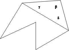 · Отрезаем треугольник образованный этой вершиной и двумя смежными. 4. Площадь многоугольника будет равна сумме площадей отрезанных треугольников и площади оставшегося (при выходе из цикла) треугольника. Рассмотрим все пункты алгоритма. 1) Ввод данных. Данные будем хранить в текстовом файле ,каждая первая строка которого содержит количество вершин, а последующие – пары координат (X,Y), разделенных пробелом. Координаты вершин и внутренние углы будем хранить в структуре типа: sd: array[1..100] of record x,y: real; angle: real; end; А количество вершин в глобальной переменной n. Следующая процедура осуществляет ввод данных: procedure input; var f: text; i: integer; begin Assign(f,'points.dat'); reset(f); readln(f, n); for i:=1 to n do readln(f, sd[i].x, sd[i].y); end; 2) Предварительная обработка. В данном пункте алгоритма осуществляется вычисление внутренних углов многоугольника.