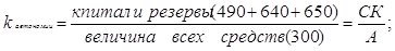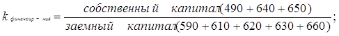 Рост данного коэф. на 0,025 в течение года показывает, что рост собственного капитала в общей величине всех источников увеличилась на 70%всех активов предприятия, сформированных за счет собственных средств. Предприятие обладает достаточной независимостью и возможностью проведения независимой финансовой политики. 2)