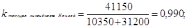 Снижение данного коэф. за 2000г. означает уменьшение части текущих обязательств, которая может быть погашена на дату составления баланса. Увеличение одних показателей ликвидности и снижение др. свидетельствует о том, что финансовое положение предприятия неустойчивое, и оно не смогло бы погасить своих обязательств в срочном порядке. Об этом свидетельствует и постепенное сокращение в течении отчетного года превышения оборотных активов над краткосрочными обязательствами. 8. Рассчитаем показатели табл.7, и оценим удовлетворительность структуры баланса и платежеспособность организации на конец года. Основание для признания структуры баланса предприятия неудовлетворительной, а предприятие – неплатежеспособным, является выполнение одного из следующих условий: ü коэф. текущей ликвидности должен быть < 2; ü коэф. обеспеченности собственными средствами на конец отчетного периода < 1; В нашем случае выполняется первое условие (0,99<2), значит, структура баланса является неудовлетворительной. В этой ситуации необходимо провести проверку реальной возможности восстановления платежеспособности предприятия. Коэф. восстановления платежеспособности: