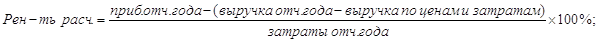 Влияние факторов на изменение рентабельности реализации: 1) Влияние изменения структурных сдвигов в реализации: 3,27-2,4=+0,87 Реализация более выгодной продукции привела к повышению рентабельности реализации на 0,87%; 2) Влияние цен= расчетная рентабельность – расчетная рентабельность