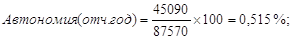 (6) Коэф-нт автономии (%):