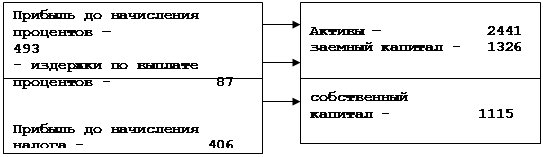 Рис. 3.3. АО “Г” Взаимосвязь прибыли и вложенного капитала. Владельцу фирмы интересно выяснить, каким образом окупается собственный капитал. Согласно рис. 3.3, формула для расчета уровня рентабельности собственного капитала будет выглядеть следующим образом: