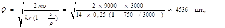 Расчет оптимальной величины серии можно произвести по следующей формуле: где Q – оптимальная величина серии; m - годовой объем производства; o - издержки по подготовке производства в расчете на год; к - переменные издержки на единицу продукции; r - издержки на складирование готовой продукции в процентах от средней годовой стоимости запаса готовой продукции; s – максимально возможный объем реализации в данный период;
