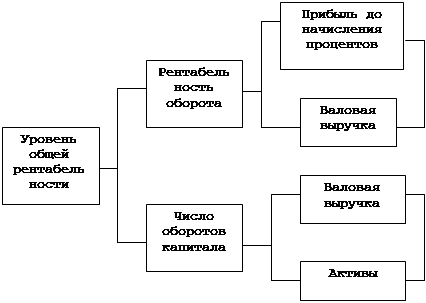 Чем больше прибыль по сравнению с валовой выручкой предприятия, тем больше рентабельность оборота. Чем выше валовая выручка фирмы, тем больше число оборотов ее капитала. Уровень общей рентабельности предприятия равен произведению рентабельности оборота и числа оборотов капитала: