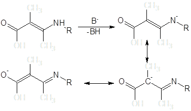 В отличие от кето-енольной таутомерии, факторы, контролирующие енамин-иминные превращения, изучены мало. Известно, что стабильность енаминных форм выше для третичных и ниже для первичных ненасыщенных аминов, но даже первичные и вторичные енамины могут быть стабилизированы введением в β-положение соответствующего заместителя (в работе [6] – COOH). Показано также, что полярные растворители сдвигают равновесие в сторону образования енаминов. Данные теоретических расчетов, в то же время, дают противоположный результат [6]. Для некоторых катион-радикалов енаминов и иминов и соответствующих нейтральных молекул измерены теплоты образования [7]. Енамин-иминная таутомерия может обуславливать быструю рацемизацию некоторых веществ в протонных растворителях, препятствуя тем самым разделению энантиомеров соединений, содержащих в углеродном скелете группировку