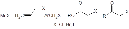 Авторы [4] приводят следующие условия как необходимые для протекания реакции алкилирования по требуемому направлению: 1. Скорость образования нуклеофильной частицы должна быть выше скорости ее конденсации с исходным веществом. 2. Селективное протекание реакции по атому углерода. 3. Скорость реакции взаимодействия нуклеофил-электрофил должна быть выше скорости реакции переноса протона. 4. Реакция нуклеофил-электрофил должна протекать быстрее, чем взаимодействие нуклеофила с продуктом реакции. Из трех упомянутых в заголовке типов алкилируемых соединений безусловно лучшим или более удобным нельзя назвать ни один. Преимущества каждого описаны ниже: