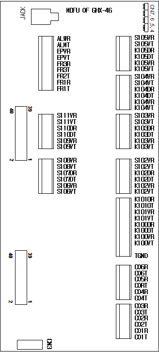 *) Платы COB, ETIB, SLIB24, SLIB8, SLIB48 и VAU4 взаимозаменяемы для систем GHX-36 и GHX-46. A. БАЗОВЫЙ БЛОК (KSU) Базовый блок выполнен в виде металлического корпуса для настенного крепления и содержит: 1) основную системную плату MBU, на которой расположены 6 слотов для установки плат расширения и платы VAU4, 2) источник питания со схемой подключения аварийной батареи и генератором индукторного вызова, и 3) кроссировочную плату (MDF). На основной системной плате размещены: - Микропроцессор и цепи управления - 4 порта внешних линий - 1 порт аналогового системного аппарата - 7 гибридных портов (системный или стандартный однолинейный аппарат) - 1 таймер реального времени - 2 реле управления внешними устройствами - 1 детектор контрольно-вызывных сигналов (зуммера) ГАТС - 2 универсальных слота (плато-места) - 3 слота для плат расширения абонентской емкости - 1 слот для платы VAU B. Плата интерфейса внешних двухпроводных линий (COB) Плата содержит 4 порта внешних двухпроводных линий (CO/PBX) с шлейфовой сигнализацией, разъём для подключения внешних линий, и обеспечивает импульсный и частотный (DTMF) способы набора номера. Дополнительно на плату могут быть установлены модули CMU - приёмник сигналов тарификации и CPTU - детектор контрольно-вызывных сигналов. Плата COB устанавливается в слоты #4 и #5 основной системной платы.