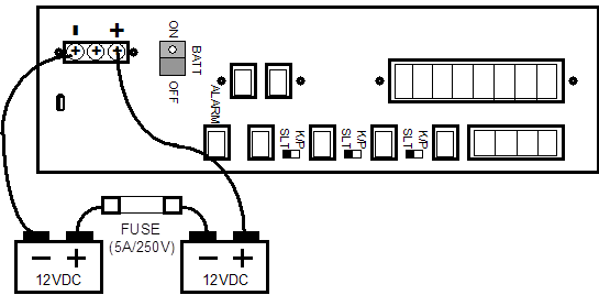 Примечание. E.PAGE: Порт внешнего оповещения FR: Контакты реле управления внешними устройствами MOH: Порт музыкального источника Рисунок 1.8 ПОДКЛЮЧЕНИЕ ДОПОЛНИТЕЛЬНЫХ УСТРОЙСТВ 1.5.13 Подключение головных телефонов (гарнитуры оператора) Системные телефоны могут быть оборудованы стандартными адаптерами головных телефонов. Для использования гарнитуры подключите адаптер к разъёму вместо телефонной трубки. В программе FLASH 40 необходимо запретить использование спикерфона (встроенного микрофона). После этого невозможно выполнение операций на телефонном аппарате без снятия трубки: такие функции, как “Набор номера без снятия трубки” и “Автоматический ответ в режиме громкой связи” (Handsfree), будут недоступны для пользователя. Однако, входящие звонки, оповещение, сигнал вызова и музыка в фоновом режиме будут слышны на громкоговорителе аппарата. Клавиша контроля MON в этом случае будет управлять состоянием трубки (снята или положена). 1.5.14 Подключение батарей Для обеспечения бесперебойного режима работы системы в случаях аварии сетевого электропитания рекомендуется подключить блок аккумуляторных батарей на 24 В ( обычно две батареи по 12 В) с ёмкостью не более 20 А/ч. Желательно использовать необслуживаемые батареи. Необходимо соблюдать следующие требования: A. Батареи следует размещать в помещении с ограниченным доступом и хорошей вентиляцией для удаления возможного газовыделения. B. Батареи должны быть устанавлены в соответствии с требованиями пункта 480 National Electrical Code (NEC) в США или аналогичными документами в других странах. C. Следует оградить батареи от возможного повреждения или опрокидывания, что может вызвать утечку кислоты или замыкание пластин. Помещение следует контролировать на предмет возникновения пожара, резкого повышения температуры, повышенной загазованности и т.п. D. Необходимо использовать гибкий изолированный кабель минимальной длины для подключения к системному блоку. Кабель следует зафиксировать таким образом, чтобы при его перемещении исключалось перемещение батарей. E. Используйте предохранитель номиналом 12 А / 32 В или 12-ти амперный автоматический выключатель постоянного тока, который устанавливается последовательно в цепи отрицательного полюса во избежание повреждения батарей. F Для выполнения правильного подключения см. рисунок 4.7. Сечение и длину соединительного кабеля необходимо выбрать таким образом, чтобы падение напряжения в цепи постоянного тока между батареями и системным блоком не превышало 0.5 В. (CN230: External Battery Terminal) CN230 MBU FUSE (5A/250V) 12VDC 12VDC Рисунок 1.9 Подключение батарей аварийного питания 1.5.15 Переключатель литиевой батареи Для защиты системной базы данных от стирания при отключении электропитания мини-АТС, необходимо после программирования системы перестановить перемычку “CN224” на основной плате (MBU) из положения “OFF” в положение “ON”. Этим достигается подключение литиевой батареи, обеспечивающей энергонезависимость системной памяти. 2 GHX-616 Гибридная мини-АТС GHX-616 разработана для применения в качестве учрежденческой АТС в малых организациях, использующих до 6 городских линий и 16 внутренних абонентов. Станция выполнена в виде плоского металлического корпуса для настенного крепления. Ёмкость базового блока: 3´8 (3 порта внешних линий, 8 портов внутренних абонентов: 1-системный порт, 3-гибридных и 4 с
