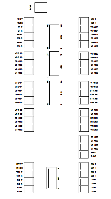 G. Источник питания (PCU) Источник питания предназначен для преобразования сетевого напряжения (110 или 220 В частотой 50-60 Гц) в постоянные напряжения, необходимые для питания системы (MBU), а также формирует напряжение вызывного сигнала для однолинейных аппаратов. Кроме того, источник питания содержит схему, обеспечивающую подзарядку внешней 24-х вольтовой аккумуляторной батареи, и обеспечивает управление цепями бесперебойного питания, автоматически подключая батарею в случае аварии электросети. H. Кроссировочная плата (MDFU) На кроссировочной плате расположены клеммы для подключения к системе внешних и внутренних линий базовой емкости, а также дополнительного оборудования. Три реле, размещенные на плате MDF, предназначены для аварийного переключения трех внешних линий на стандартные аппараты № 106 - 108. Плата содержит: - схему аварийного переключения внешних линий - вход внешнего музыкального источника или вход для записи сообщений - контакты реле: FR1T/FR1R-FR3T/FR3R - контакты датчика сигнализации - порт внешнего оповещения I. Модуль формирования сигнала уведомления (MSGU) Модуль MSGU формирует сигнал уведомления о вызове для стандартных аппаратов, оборудованных сигнальной лампой. Модуль дополнительно устанавливается на плату SLIB24 и обеспечивает сигналом уведомления 4 аппарата, подключенных к этой плате. J. Модуль последовательного интерфейса (SIU) Модуль SIU дополнительно устанавливается в базовый блок и содержит стандартный порт последовательного интерфейса RS-232С, посредством которого обеспечивается подключение к системе принтера (или компьютера) для распечатки отчета регистрации исходящих и входящих вызовов (SMDR).