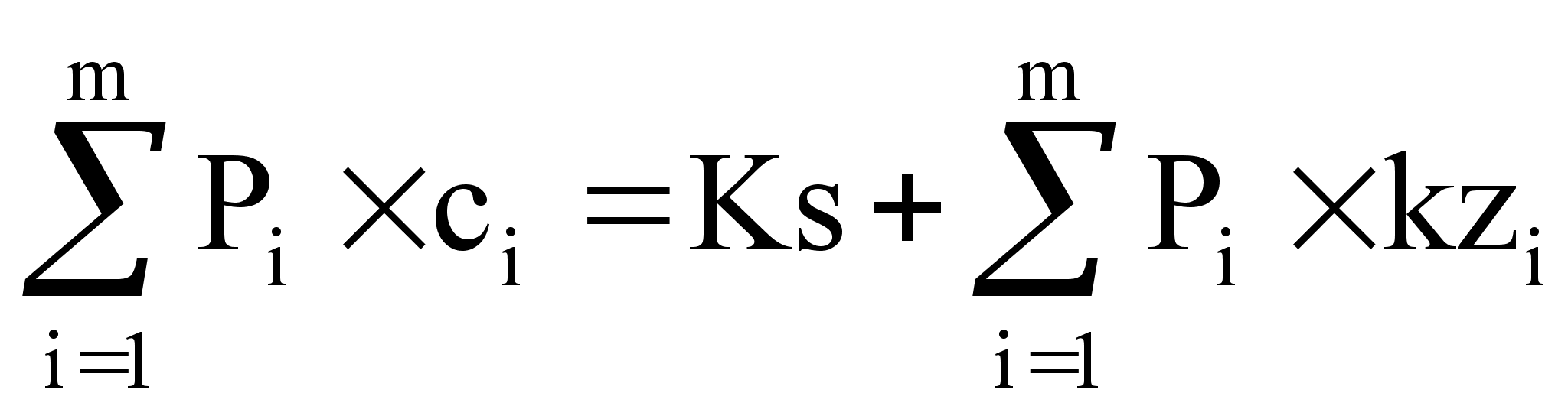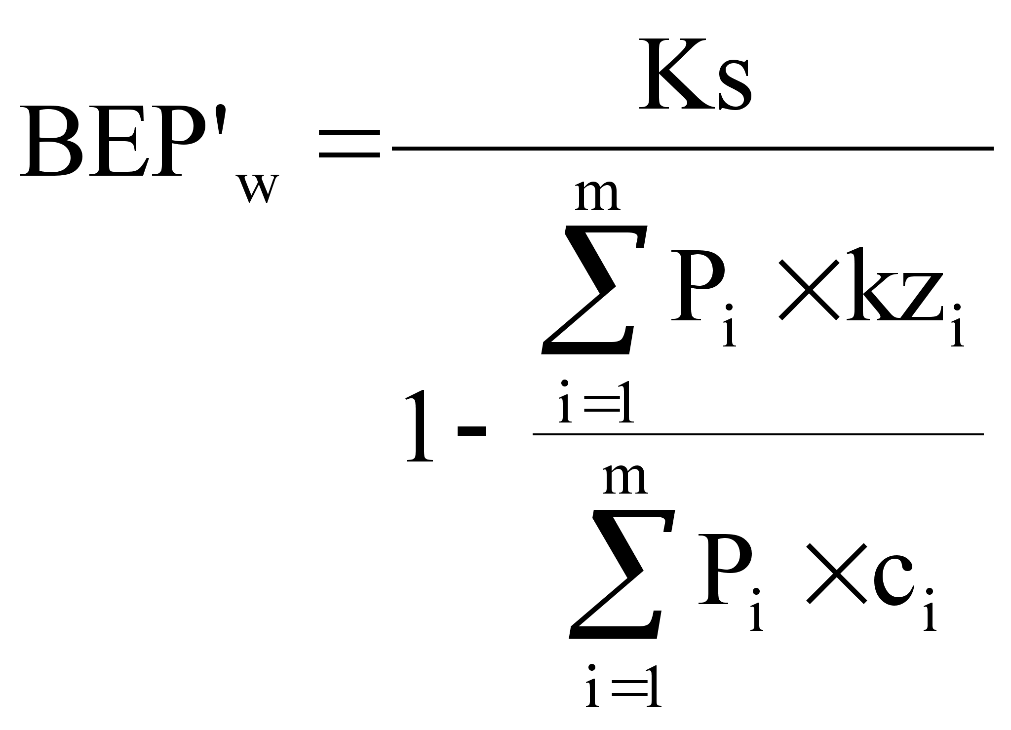 O ile w przypadku produkcji jednoasortymentowej próg rentowności był punktem, o tyle przy produkcji wielu różnych wyrobów jest on zbiorem punktów. Zrównoważenie wartości sprzedaży i kosztów można osiągnąć przy wielu różnych kombinacjach struktury asortymentowej. Pewnym uproszczeniem dalszej analizy może być przyjęcie założenia, w myśl którego udiał łącznych kosztów zmiennych w jej wartości jest stały i z góry określony. Wartościowy próg rentowności możemy wówczas ustalić na podstawie równania: