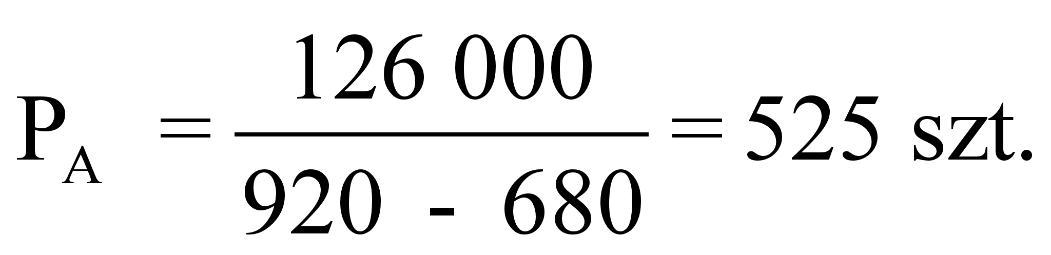 gdzie: S-wartość sprzedaży P-ilość sprzedanych wyrobów c-jednostkowa cena sprzedaży poziom kosztów całkowitych według równania: