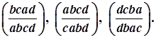 Називатимемо §2. Неважко бачити, що одну й ту ж саму підстановку можна зобразити різними символами, причому можна писати різні знаменники. Тоді чисельники повинні також відповідно змінюватись, бо знак підстановки повинен вказувати, якою буквою замінюється кожна буква знаменника. Порядок же букв у знаменнику цілком довільний. Наприклад, такі знаки виражають одну підстановку: