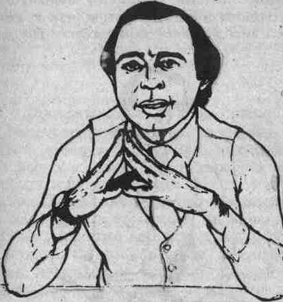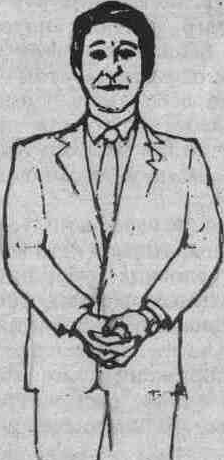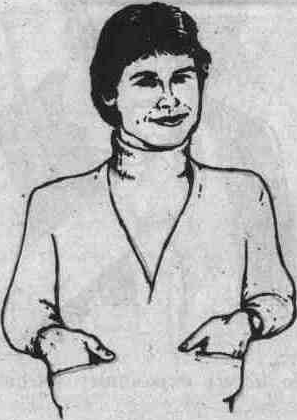 Автомобили и их влияние на чувство территории. Психологи заметили, что люди за рулем совершенно по-другому реагируют на факторы, имеющие отношение к их территории, и эта реакция отличается от обычного социального поведения. Похоже, что машина оказывает существенное влияние на размеры личной зоны человека. В некоторых случаях размеры территории могут увеличиваться в 10 раз. Когда другой водитель проскакивает перед ним, водитель (даже если никакого вреда это ему не причинило) может испытать ряд физиологических изменений в организме, типа ярости, вплоть до желания атаковать другого водителя. А в другой ситуации, например когда этот же человек хочет пройти в лифт, а кто-нибудь опережает его, тем самым вторгаясь на его личную территорию. Он отреагирует на это обстоятельство извинением и пропустит другого человека вперед. Его стиль поведения будет значительно отличаться от той ситуации, когда водитель пересек ему дорога на шоссе. Для других людей машина становится защитным коконом, в который они могут спрятаться от окружающего мира. И когда они медленно едут у обочины, они могут стать таким же источником неприятностей на дороге, как и водитель с расширенной зоной личной территории. ЛАДОНИ. Честность и открытость. Испокон веков открытая ладонь ассоциировалась с искренностью, честностью, преданностью и доверчивостью. В повседневной жизни люди используют два положения ладони. Первое – это когда ладонь протягивается лодочкой и означает жест нищего, просящего милостыню. Второе положение – ладонь развернута вниз, и это сдерживающий или успокаивающий жест. Самый лучший способ узнать, откровенен ли с тобой в данный момент собеседник, -- это понаблюдать за положением его ладоней. Если собака проявляет покорность и подчинение победителю, подставляя свою шею, то человек делает это с помощью своих ладоней. Когда человек начинает откровенничать, он обычно раскрывает перед собеседником ладони полностью или частично. Это полностью бессознательный жест, он подсказывает Вам, что собеседник говорит в данный момент правду. Когда ребенок обманывает или что-то скрывает, он прячет ладони за спиной. Сила ладони. Одним из наименее заметных и в то же время наиболее значительных невербальных сигналов является сигнал, передаваемый ладонью человека. Если правильно использовать силу ладони, то она может придать человеку больше авторитета и возможность командовать другими. Существует три основных командных жеста ладони: положение ладони вверх, положение ладони вниз и положение указывающего перста. Положение открытой ладони вверх есть доверительный, неугрожающий жест. Например, человек, которого мы попросили передвинуть коробку, не почувствует никакого давления и воспримет это как просьбу с Вашей стороны. Когда ладонь повернута вниз, в жесте появляется оттенок начальственности. У человека, которому адресована просьба, появится ощущение, что он получил приказ передвинуть коробку, и может даже возникнуть чувство враждебности к Вам. Жест «указывающего перста» (рис.7) является одним из наиболее раздражающих, используемых человеком в процессе речи, особенно если он совпадает по смыслу со сказанными словами. Доминирующее и покорное рукопожатие. Через рукопожатие один из трех типов возможных взаимоотношений: превосходство, покорность и уступчивост