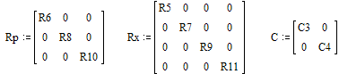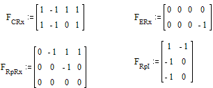 Составим ![]() матрицу сопротивлений Rp и Rx, а также матрицу ёмкостей C Подставляя полченные матрицы в вышеприведённые формулы получим:
