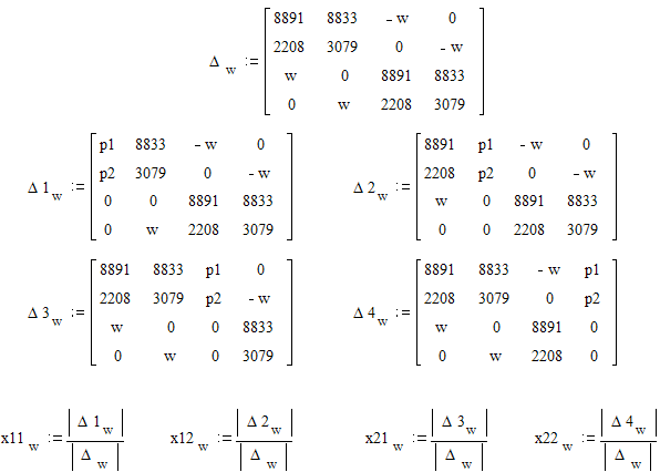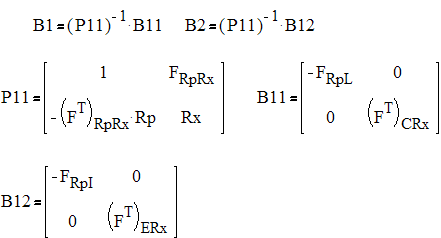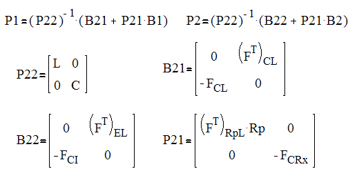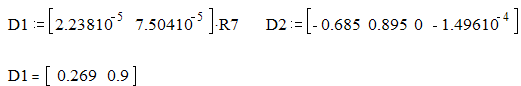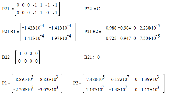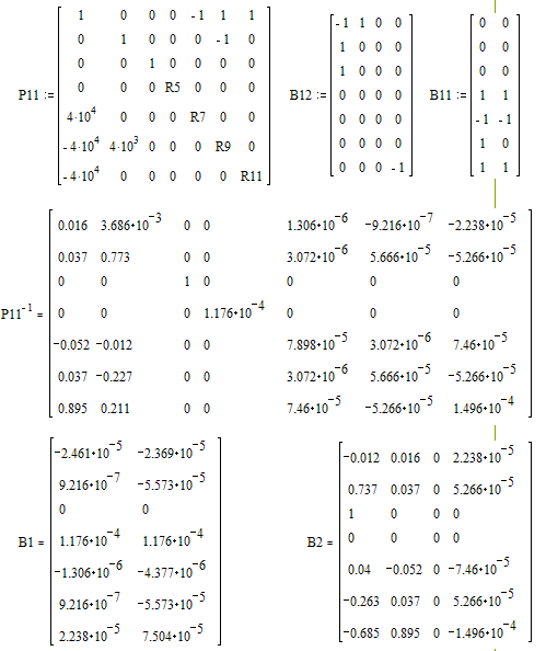Определим коэффициенты В1, В2, Р1, Р2, используя для этого программу “Mathcad”. Составим необходимые транспонированые подматрицы