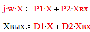 Полагая Хвх = 1 можно определить Хвых = К*Хвх. Представляя переменные Х и К в развернутой форме и приводя подобные, получим следующею систему уравнений позволяющую рассчитать действительную и мнимую части комплексного коэффициента передачи: Распишем эту систему конкретно для нашего случая, и получим следующий результат: