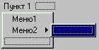 Во многих приложениях также применяется возможность закрытия доступа к определенному пункту меню, есло в данный момент он не может выполнится. Для этого служит свойство Enabled. Оно, как и Checked, имеет тип Boolean. На рис. 2.4 видно, что пункт «Меню2» выделен жирным шрифтом. Это результат установки еще одного логического свойства объекта – Default. Еще одна важная возможность – вставка разделительной линии. На рис. 2.5 (стр. 16) она размещена между «Меню1» и «Меню2»: